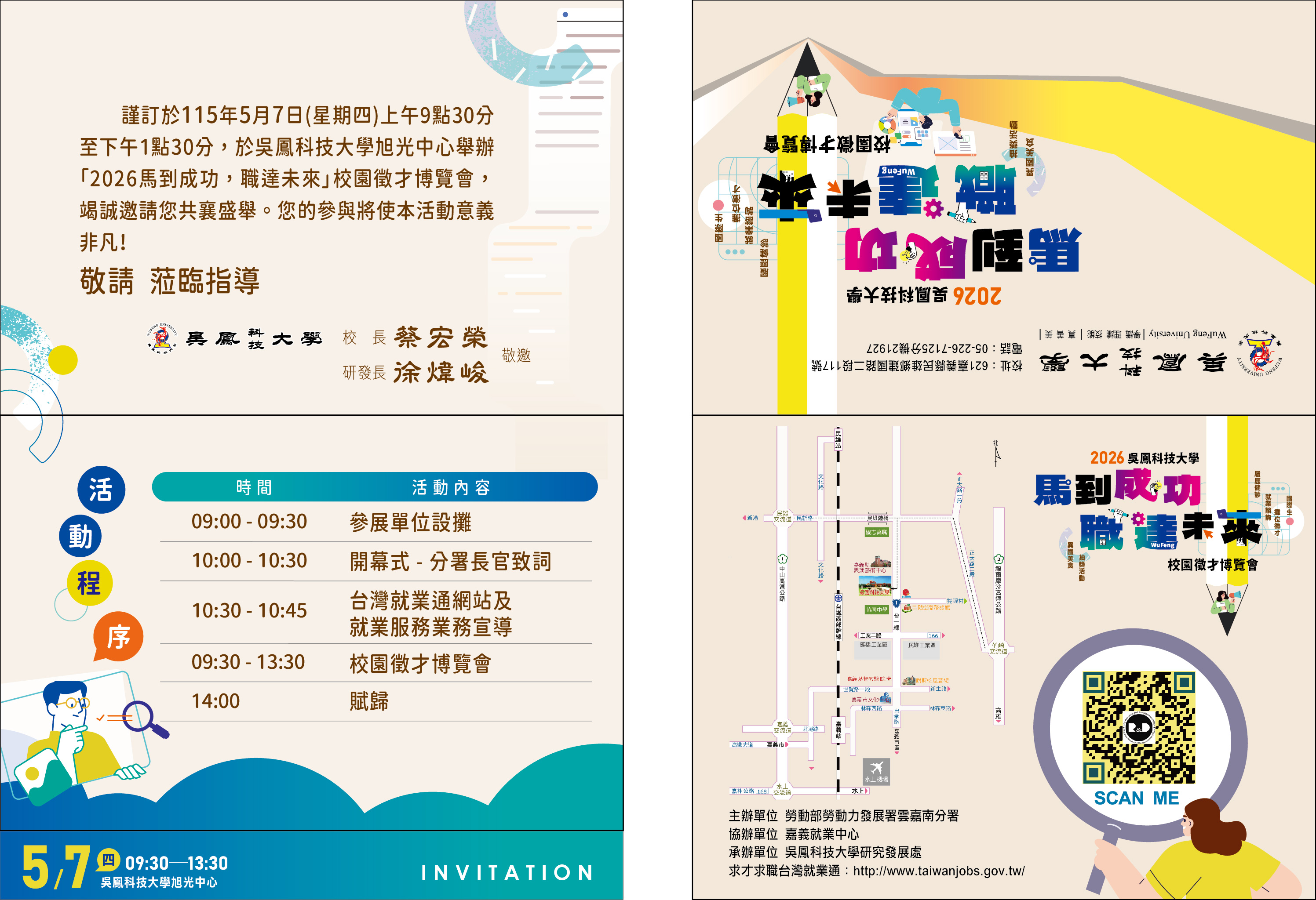 :: 最新消息 / 吳鳳科技大學115年05月07日辦理2026「馬到成功,職達未來」校園徵才活動[其他]